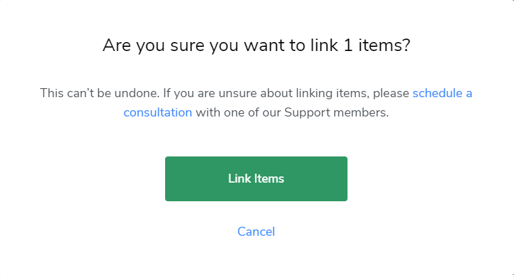 5.Confirm that you want to merge the selected items by clicking Link Items.