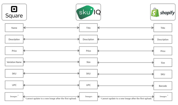 After signing up with SKU IQ, merchants often choose to edit products using one preferred platform only, and can then have their SKU IQ account configured to automatically sync certain product edits from that same preferred platform. For example, if you edit a product title in Square, the SKU IQ support team can configure your account to sync that updated product title from Square to Shopify.