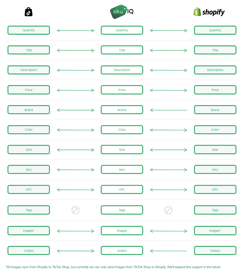 *All images sync from Shopify to TikTok. We're adding support for importing TikTok images in the near future.
